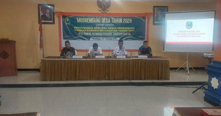 Magetan – Pemerintah Desa Truneng, Kecamatan Sukomoro, Kabupaten Magetan, melaksanakan Musyawarah Perencanaan Pembangunan Desa (Musrenbangdes) dalam rangka penyusunan Rencana Kerja Pemerintah Daerah (RKPD) Tahun 2027 bertempat di Balai Desa Truneng, dan diikuti kurang lebih 40 peserta dari berbagai unsur masyarakat. Rabu, (14/01/26)