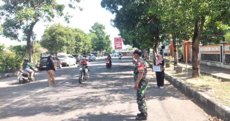 Magetan. - Babinsa Koramil Tipe B 0804/08 Barat Serma Sumadi bersama Gerakan Seniman Peduli Sesama menggalang donasi peduli bencana alam Sumatera penggalang dana bertempat di perempatan jalan raya Kelurahan Mangge, Kecamatan Barat, Kabupaten Magetan. Jumat (5/12/25)