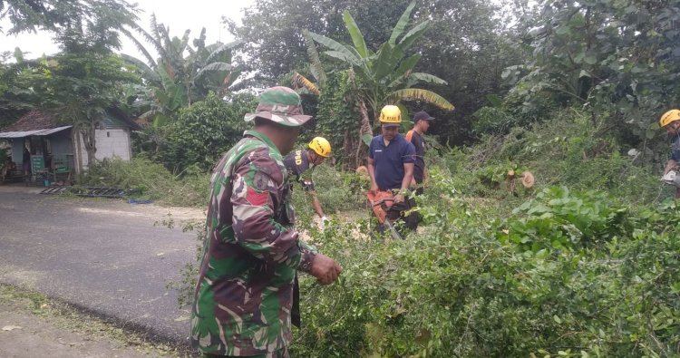 Magetan - Babinsa Koramil 0804/08 Barat Kopka Suroto Bersama petugas BPBD dan Dinas Lingkungan Hidup (DLH) Kabupaten Magetan evakuasi pohon, hal ini dilakukan mengantisipasi pohon tersebut tumbang karena posisi pohon berada di atas badan jalan yang rentan akan tumbang dengan kondisi cuaca serta kondisi pohon itu sendiri. bertempat di jalan raya Desa Bayemtaman Kecamatan Kartoharjo Kabupaten Magetan, Rabu (12/11/25)