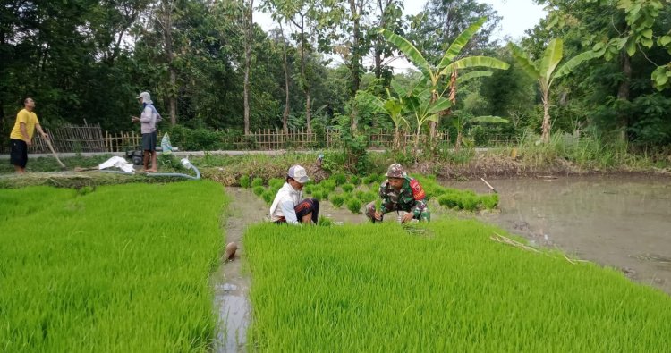 Dengan semangat dan tidak ada rasa ragu Babinsa Koramil 0804/13, Bendo membantu petani mencabut bibit Padi untuk dipindahkan. Hal ini dilakukan agar bibit padi dapat tumbuh dengan baik