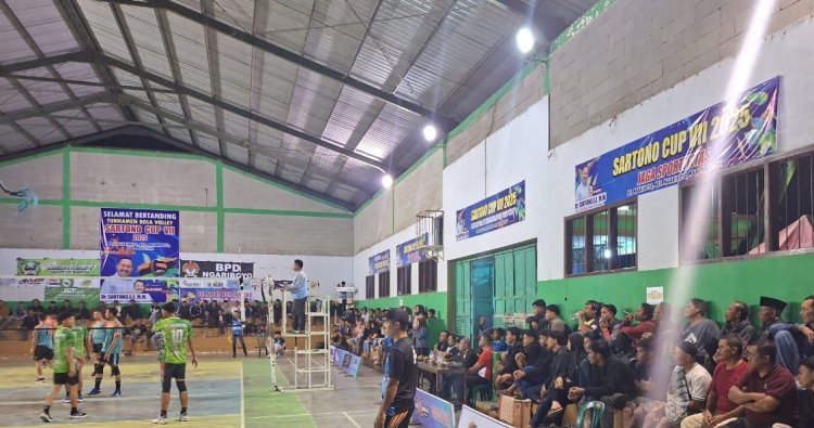 Magetan.- Babinsa desa Selopanggung Koramil 0804/01 Magetan Kodim 0804 Magetan Serda Rosian Arwar memantau dan menghadiri peaksanaan kegiatan Penutupan Turnamen Bola Voli Ngariboyo cup dalam rangka merebutkan piala sartono CUP VII Tahun 2025 yang di hadiri sekitar 200 orang bertempat di GOR Rajawali Desa Selopanggung kecamatan Ngariboyo Kabupaten Magetan. Kamis Malam (13/11/25)