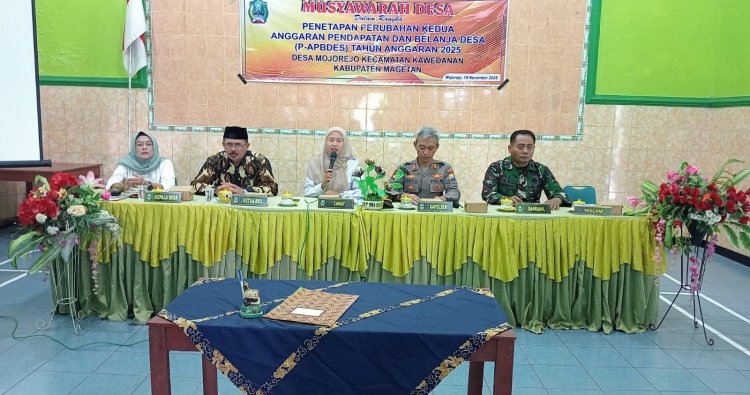 Magetan. – Bati Tuud Koramil 0804/10 Kawedanan Peltu Suwanto menghadiri acara Musyawarah Desa Penetapan Perubahan kedua Anggaran Pendapatan dan belanja Desa (APBDes) Desa Mojorejo tahun anggaran 2025 yang bertempat di Balai Desa Mojorejo Kecamatan Kawedanan Kabupaten Magetan, Kamis (20/11/2025)