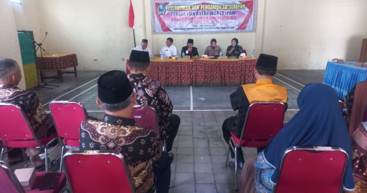 Magetan. - Danramil 0804/06 Maospati Kapten CBA ( K ) Dyah Nilasari S.Sos beserta forkopimca Kec. Maospati menghadiri kegiatan pelantikandan pengambilan sumpah penggantiantar waktu (PAW) Anggota permusyawaratan desa (BPD) periode tahun 2019-2027 Desa Sumberejo, Kec. Maospati, Kab Magetan. Rabu ( 5/11/2025 )