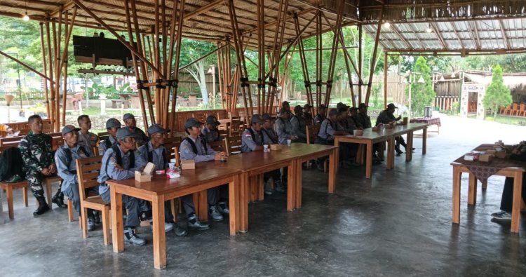 Magetan.- Danramil 0804/08 Barat Kapten Inf Denni Erwanto memberikan pelatihan penguatan peningkatan kapasitas tenaga keamanan Satlinmas Desa Bangunasri bertempat di wisata lembah serimpi randu gede kecamatan Plaosan Kabupaten Magetan, Kamis (11/12/25)