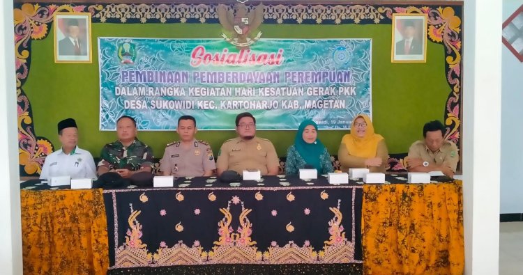 Magetan - Danramil 0804/08 Barat kapten Inf Denni Ermanto, Mendukung Pembinaan pemberdayaan perempuan dalam rangka Hari Kesatuan Gerak (HKG) PKK tahun 2026 difokuskan pada penguatan peran perempuan sebagai pilar ketahanan keluarga, peningkatan ekonomi serta adaptasi informasi digital. Acara tersebut bertempat di Balai Desa Sukowidi Kecamatan Kartoharjo Kabupaten Magetan.Rabu (21/01/26).