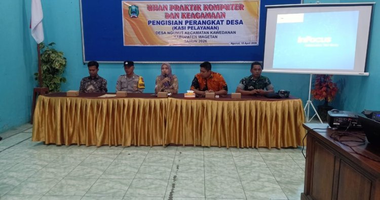 Magetan. - Guna meningkatkan pelayanan dan menjalankan roda pemerintahan di desa, Pemerintah Desa Ngunut menggelar tes Tertulis dan komputer bakal calon Perangkat Desa untuk mengisi Jabatan Kasi pelayanan Bertempat di Balai Desa Ngunut Kecamatan Kawedanan, Kabupaten Magetan, Senin (20/04/2026).