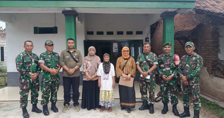 Magetan - Kapten Inf Arif Wibowo Danramil 0804/13 Bendo bersama Pasi Ter Kodim 0804 Magetan Kapten Inf Sunaryo Serta anggota Koramil 13 Bendo dan perangkat Desa Tanjung telah Menerima Tim Kunjungan Monev dari Bakesbangpol Prov Jatim dalam rangka Renovasi Rumah Tidak Layak Huni dan Pembangunan Jamban di sasaran Rumah Ibu Saminem Rt 015/ Rw 003 Desa Tanjung Kec.Bendo Kab. Magetan Rabu, (24/12/2025).