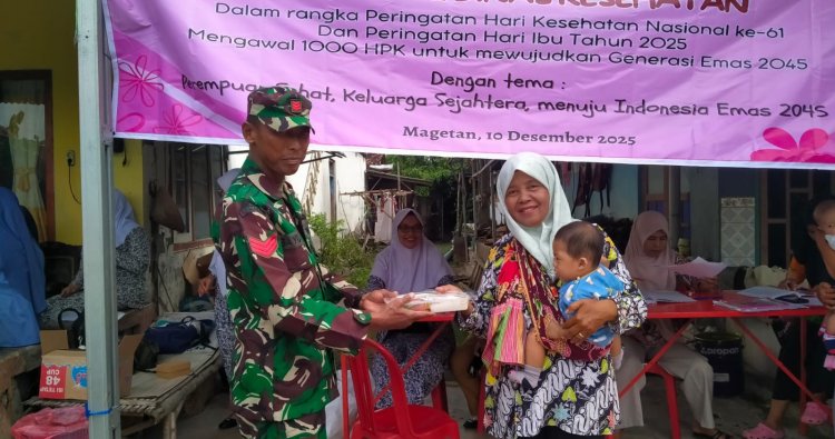 Magetan - Dalam rangka memperingati Hari Kesehatan Nasional dan Hari Ibu 2025, Ikatan Bidan Indonesia (IBI) bersama kader kesehatan dan di dampingi Babinsa Koramil Tipe B 0804/08 Barat Kopka Bayu TR melaksanakan pengabdian pelayanan kesehatan sebagai upaya memperkuat peran perempuan dan tenaga kesehatan dalam mewujudkan Indonesia Emas 2045 di Desa Sukowidi Kecamatan Kartoharjo Kabupaten Magetan. Rabu (10/12/2025)