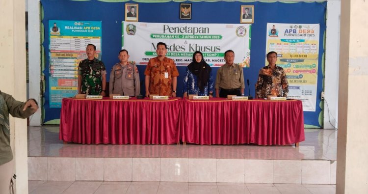 Magetan. - Komandan Koramil Tipe B 0804/01 Magetan Kodim Magetan Kapten Caj Jemani menghadiri pelaksanaan kegiatan Musyawarah Desa Paripurna Penetapan Perubahan ke 2 APDes dan Musdes Khusus KOPRASI Desa Merah Putih ( KDMP) Desa Purwosari tahun anggaran 2025 sekitar 50 orang bertempat di balai pertemuan Desa Purwosari Kecamatan Magetan Kabupaten Magetan.Senin (24/11/25)