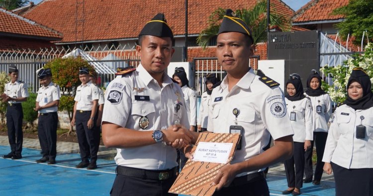 Dalam apel pagi tersebut, dilaksanakan penyerahan SK dan penyematan tanda pangkat kepada salah satu petugas pengamanan, Sigit Juliyanto, yang memperoleh kenaikan pangkat menjadi Penata Muda (III/A). Kenaikan pangkat ini merupakan bentuk penghargaan atas dedikasi, loyalitas, serta kinerja yang telah ditunjukkan dalam pelaksanaan tugas sehari-hari.
