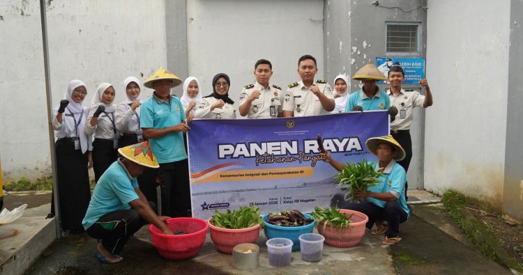 MAGETAN - Rutan Kelas IIB Magetan Kantor Wilayah Direktorat Jenderal Pemasyarakatan Jawa Timur turut melaksanakan kegiatan Panen Raya dalam rangka Panen Raya Serentak Pemasyarakatan yang digelar di seluruh Unit Pelaksana Teknis (UPT) Pemasyarakatan se-Indonesia, Kamis (15/01). Kegiatan nasional ini dipimpin langsung oleh Menteri Imigrasi dan Pemasyarakatan, Agus Andrianto, yang berpusat di Lapas Kelas I Cirebon.