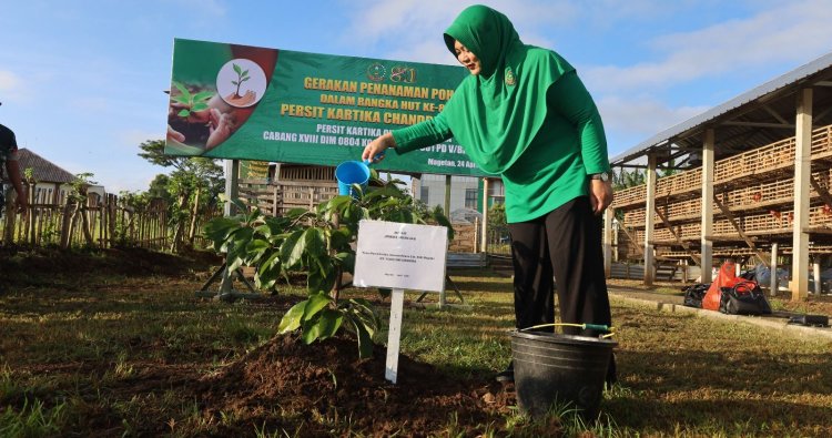 Magetan. – Dalam rangka memperingati Hari Ulang Tahun (HUT) ke-80 Persit Kartika Chandra Kirana (KCK), Persit KCK Cabang XVIII Kodim 0804/Magetan melaksanakan aksi sosial peduli lingkungan berupa penanaman pohon untuk menjaga kelestarian alam di wilayah Kodim 0804/Magetan. Jumat (24/4/2026)