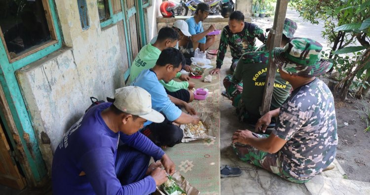 Satgas TMMD Tampak Harmonis Saat Menikmati Santapan Makan Siang Bersama Warga