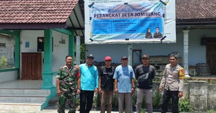 Magetan - Serka Didik Darsono, Babinsa Desa Jomblang, Koramil 0804/11 Takeran mendampingi perangkat Desa dalam Pemasangan Informasi Pengisian Perangkat Desa Jomblang, Kecamatan Takeran, Kabupaten Magetan. Senin 03/11/2025)