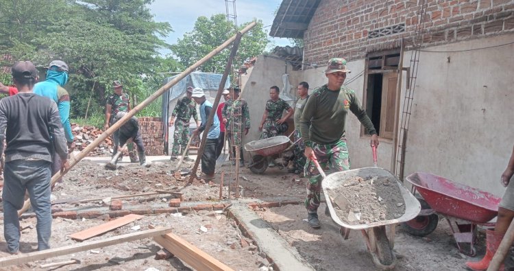 Magetan – Guna terciptanya sinergitas TNI bersama rakyat, Anggota Koramil 0804/10 Kawedanan, Kodim 0804/Magetan, Serda Hariyanto beserta 5 anggota melaksanakan karya bakti membantu pembangunan rumah milik warga binaannya di Desa Garon Kecamatan Kawedanan, Kab Magetan, Rabu (31/12/2025).