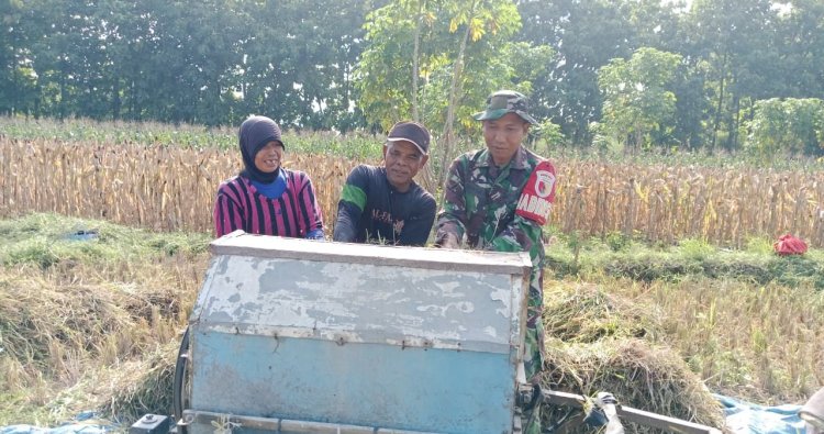 Magetan - Babinsa desa Tanjungsepreh Serda Maskur anggota Koramil Maospati jajaran kodim magetan melaksanakan pendampingan kepada petani saat memanen padi di Desa tanjungsepreh kecamatan Maospati kabupaten Magetan.Jumat ( 02/02/2026 ).