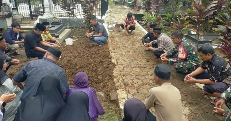 Magetan. - Komandan Koramil Tipe B 0804/01 Magetan, jajaran Kodim 0804/Magetan Kapten Caj Jemani bersama anggotanya melaksanakan takziah atas meninggalnya Almarhumah ibu Leni Asih orang tua dari Dandim 1415/Selayar Letkol Czi Yudo Harianto, S.T bertempat di TPU pedukuhan Kebaran kelurahan Tawanganom, kecamatan Magetan, kabupaten Magetan.